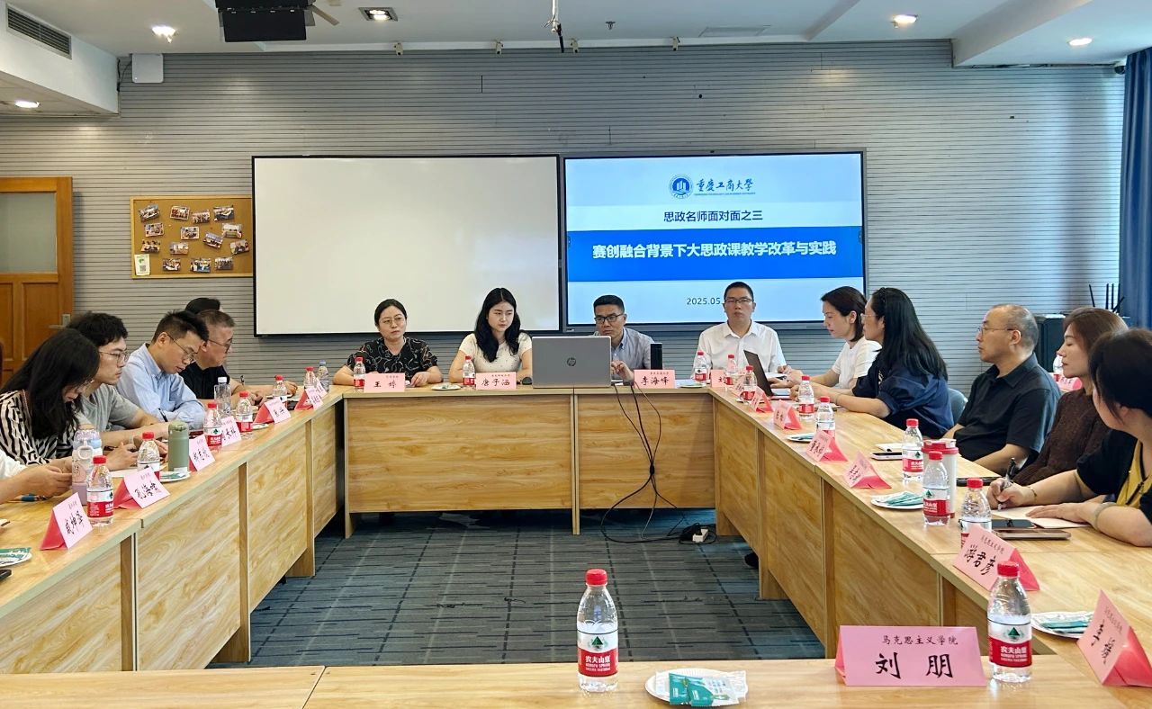 为持续实施“青年教师教学成长工程”“教学竞赛孵化培育计划”,帮助教师反思教学策略,优化教学设计,切实发挥“以赛促学、赛创融合”的育人辐射效应,5月16日,由教师发展中心举办的思政名师面对面之三——赛创融合背景下大思政课教学改革与实践研讨会在启智楼412C顺利召开。本次会议由重庆市高校思政课名师工作室负责人刘富胜和重庆市高校辅导员名师工作室负责人王婷发起并主持,来自重庆交通大学、重庆邮电大学、重庆电子科技职业大学、重庆青年职业技术学院的思政名师,以及各学院的40余名教师参加了本次研讨。
