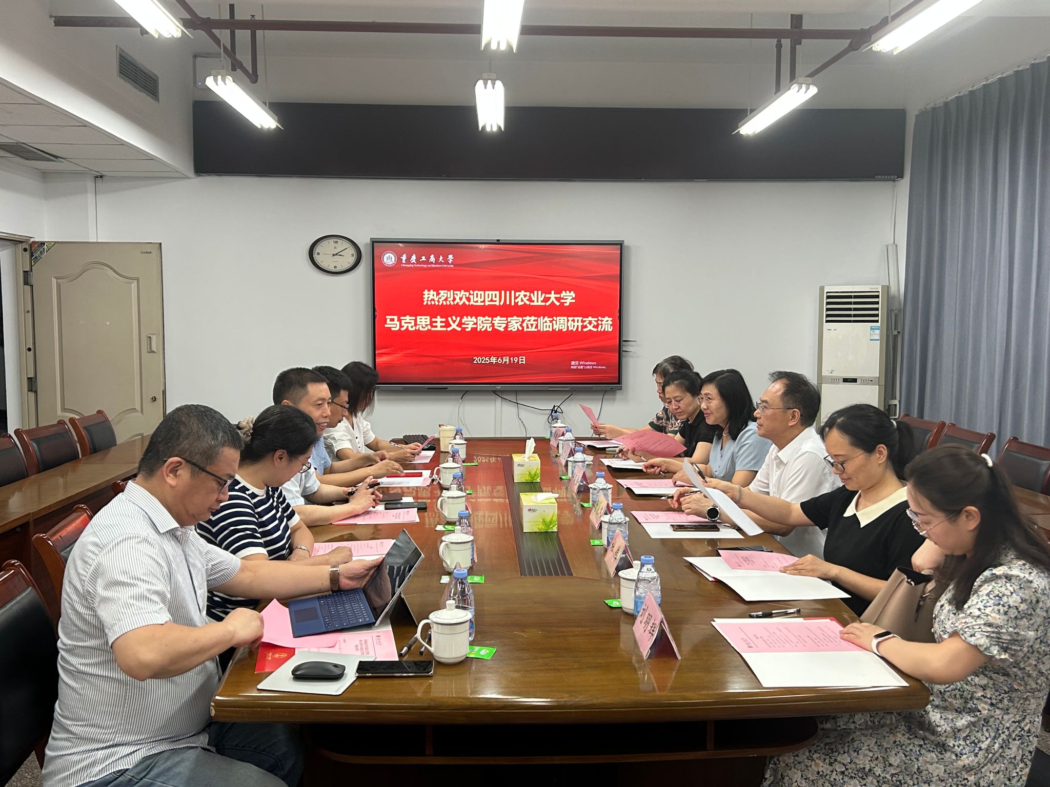 6月19日下午,四川农业大学122cc太阳集成游戏副院长邱高会教授一行6人到来我院调研交流。学院副院长洪富忠,相关教研部主任、教学督导等陪同。