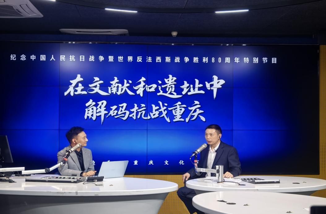 由重庆广播电视集团(总台)重庆之声、重庆史研究会历经半年时间共同策划、组织的融媒体节目《边听边看·重庆文化百人谈》纪念中国人民抗日战争暨世界反法西斯战争胜利80周年特别节目《烽火文脉:一座城的抗战坚守》将于8月22日起播出第1期,8月25日至29日每日更新。我院洪富忠教授参加了第二期节目录制。