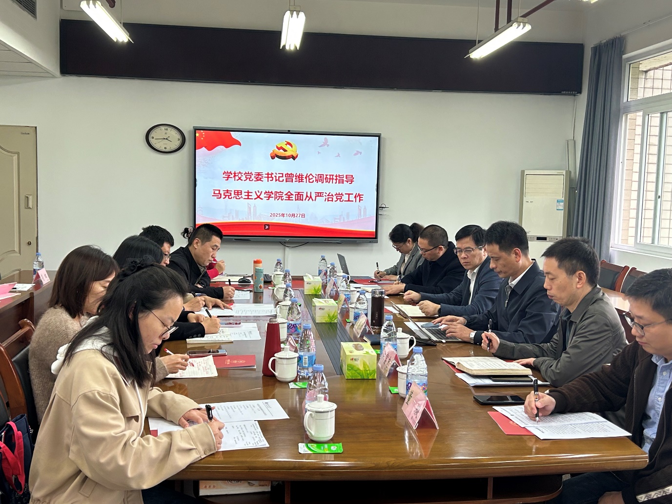 曾维伦认真听取汇报后,对学院在党建与业务融合、思政阵地建设等方面取得的工作成效给予肯定,并围绕进一步强化党建引领、推动全面从严治党向纵深发展提出明确要求。