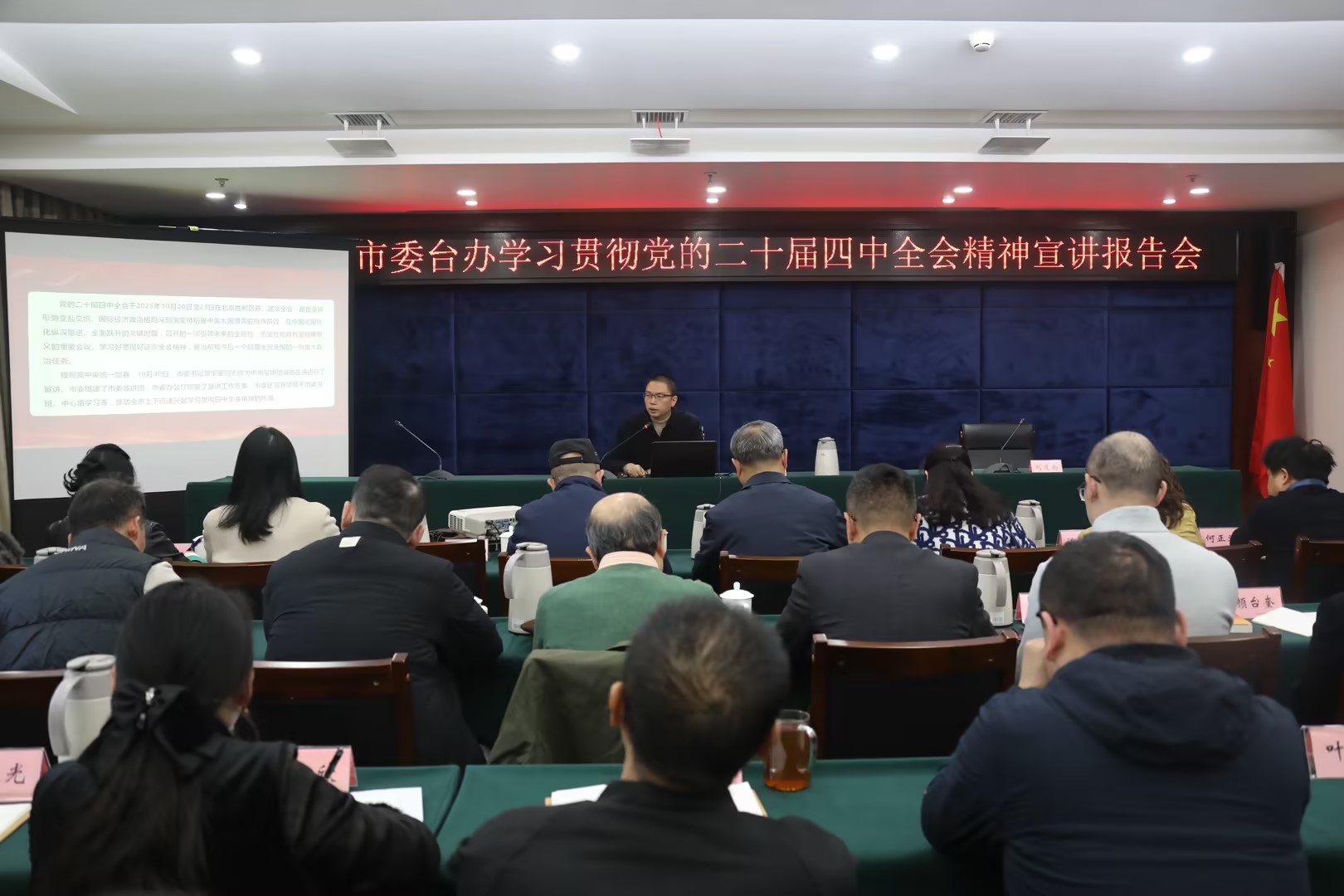 刘建南认为该宣讲报告紧扣核心要义、逻辑严密,既系统阐释了全会精神的理论精髓,又精准对接实践需求,彰显了深厚的理论功底与鲜明的实践导向。他指出,要继续深入学习领会党的二十届四中全会精神,立足工作岗位,不断凝聚工作力量和智慧,确保全会确定的目标任务在全市对台工作系统落地生根、开花结果,更好推动全市对台工作争创一流、走在前列。