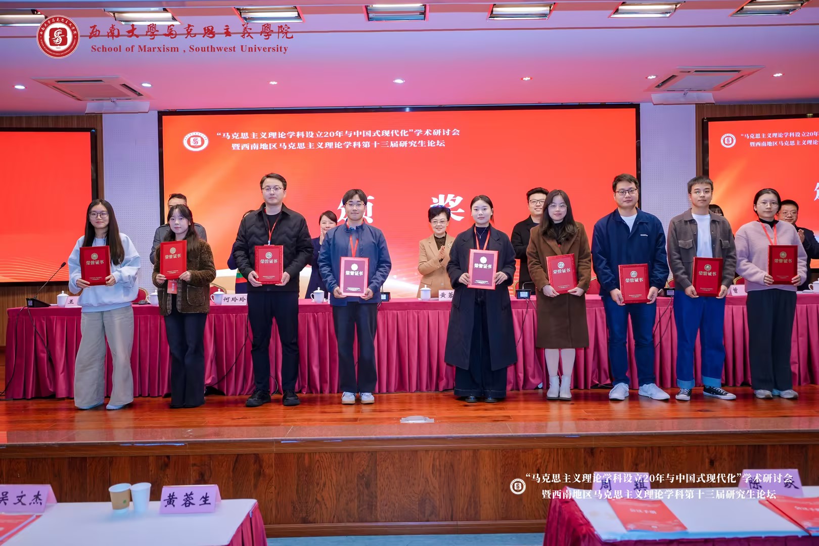 11月14日-15日,“马克思主义理论学科设立20周年与中国式现代化”学术研讨会暨西南地区马克思主义理论学科第十三届研究生论坛在重庆召开。论坛由西南大学马克思主义理论研究中心、122cc太阳集成游戏承办,主题为“马克思主义理论学科设立20周年与中国式现代化”。来自全国高校的200余位专家学者、研究生参会。论坛旨在深入学习贯彻习近平新时代中国特色社会主义思想和党的二十大及二十届三中、四中全会精神,深刻研究阐释马克思主义中国化时代化理论创新成果,推进西南地区高校马克思主义理论学科人才培养工作,提升马克思主义理论学科研究生的理论素养和研究能力。
