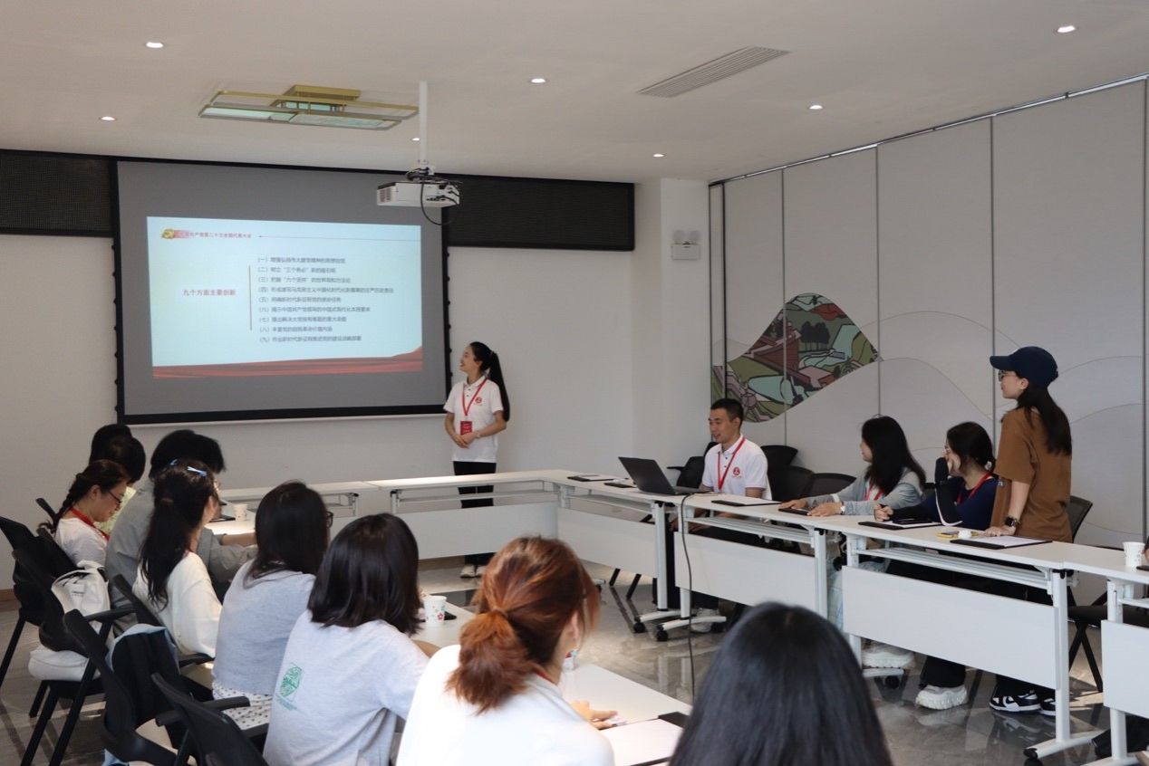 实践团一行人首先来到文化中心,在讲解员的带领下成员们详细了解了安石村产业发展、经济形态、人居环境等方面的情况。文化中心是安石村的特色建筑,将工业艺术与乡村自然相结合,将现代建筑与古法建筑相结合,体现出传统建筑文化与现代设计理念结合之美。
