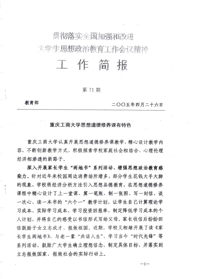教育部工作简报:太阳成集团tyc122cc思想道德修养有特色