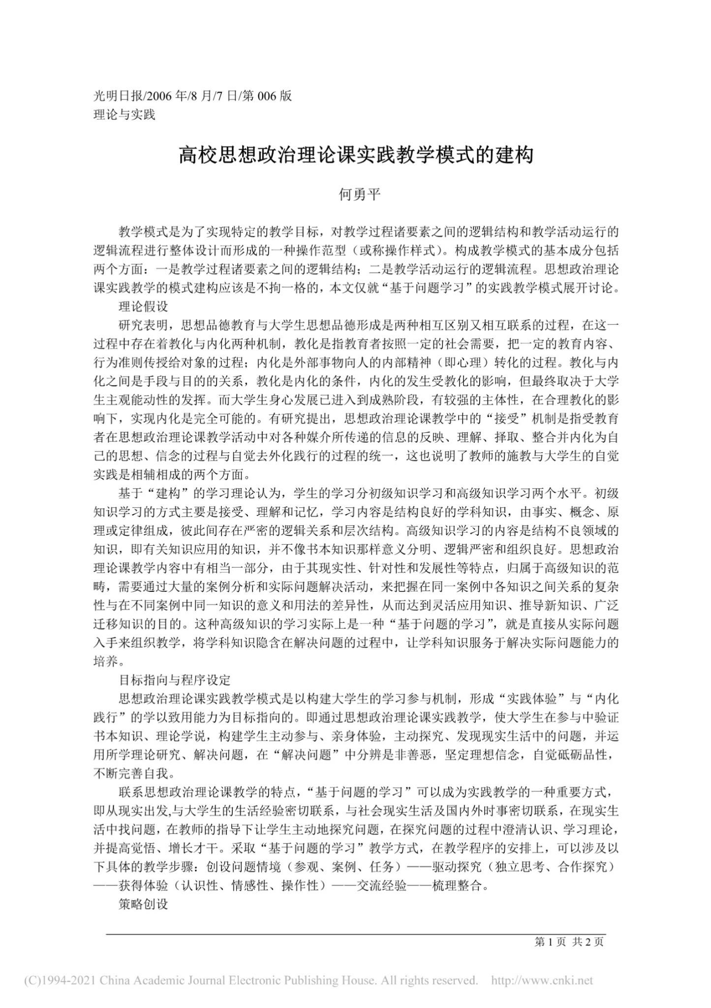 高校思想政治理论课实践教学模式的建构