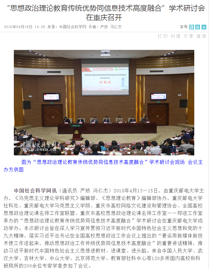 “思想政治理论教育传统优势同信息技术高度融合”学术研讨会在重庆邮电大学召开