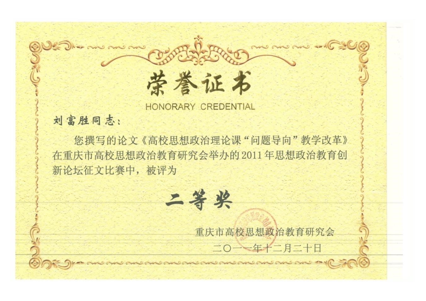 2011年重庆市高校思想政治教育研究二等奖
