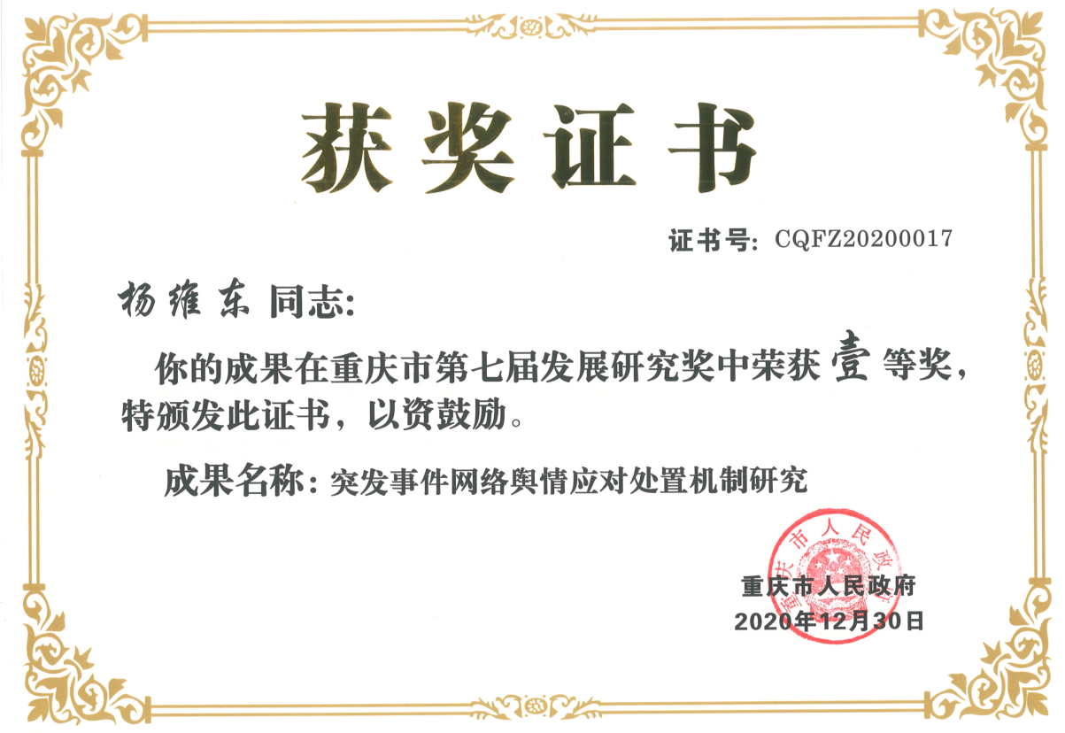 重庆市第七届发展研究奖一等奖2