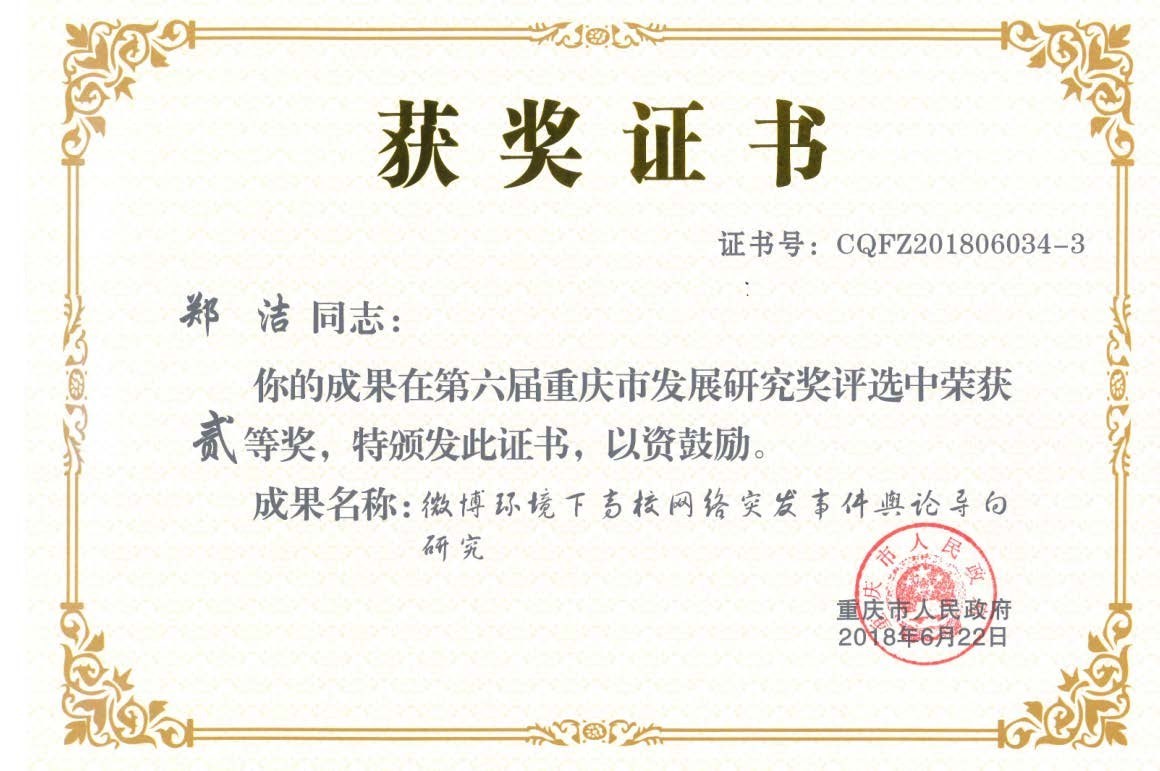 重庆市第六届发展研究奖二等奖