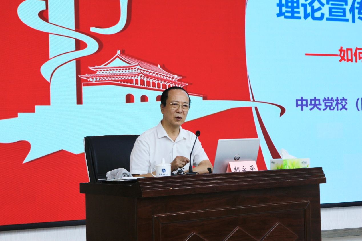 报告中,郝永平从意识形态工作与宣传思想文化工作的区别引入话题,指出二者虽紧密相关但各有侧重,强调理论宣传文章在其中的重要作用。他从四个方面阐释了写作理论宣传文章的关键要点:一是精确领会习近平总书记关于加强宣传思想文化工作的重要论述,这是确保文章方向正确、内容充实的根本遵循;二是以长期积累与深入思考来精准选题,关注社会热点、学生需求和学科前沿,避免盲目跟风;三是精心布局,在挖掘思想深度与论述新意上下功夫,使文章条理清晰、语言生动;四是精细把控,充分体现认真态度和严格要求,确保文章质量。他还强调,写好理论文章要从灵魂工程、基础工程、动力工程、战略工程四个侧面深度挖掘,把握好重点与非重点、文章共性与个性、选题宏大与细小、学理分析缺乏与过度、及时发声与自负责任、引证权威与合理、语言规范性与生动性以及字数长与短八对关系。最后,郝永平指出,写作理论宣传文章应具备坚定的政治立场、强烈的人民情怀、坚实的实践根基、深厚的学术积累、不懈的时政关注和良好的文字功底。