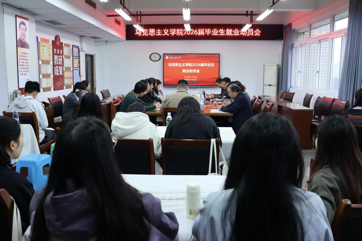 秦杉通报了学院2025届毕业生就业情况。该届毕业生实现100%就业,其中7人成功考博,多名毕业生进入教育行业、民营企业及民办高校,在学校、学院党委的正确领导及学院全体老师的共同努力下,我院2025届毕业生取得了高就业率、和高优质就业率、高专业契合度的亮眼成绩。同时,她围绕2026届就业工作安排,重点讲解了重庆高校毕业生就业信息网的正确使用方法、就业材料的规范提交要求、分类签约流程等关键内容,指出后续学院将成立就业互助小组,不定期推送岗位信息,建议同学们树立“先就业再择业”的观念,打造个人优势,持续提升就业竞争力。