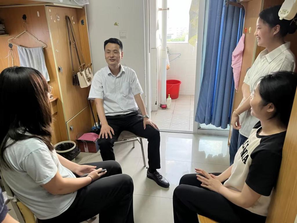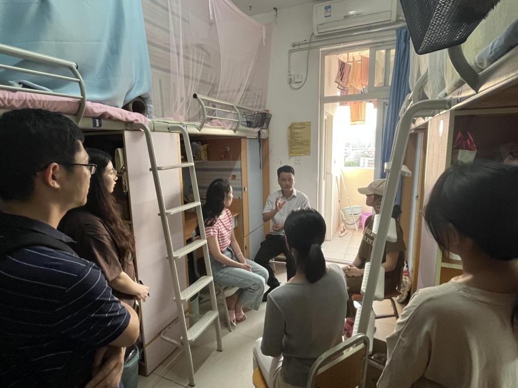 为深入开展学习贯彻习近平新时代中国特色社会主义思想主题教育,将理论学习、调查研究、推动发展等有机融合、一体推进,5月17日晚122cc太阳集成游戏党委书记宋明江、学工办主任周琴、辅导员敬德深入学院研究生宿舍,关心并听取学生学习、就业、生活等情况。