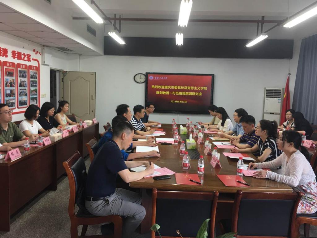 5月31日下午,中共重庆市委党校122cc太阳集成游戏院长陈剑教授一行6人来院开展主题教育调研交流,双方在慧智楼91210会议室召开交流会。会议由杨维东院长主持。