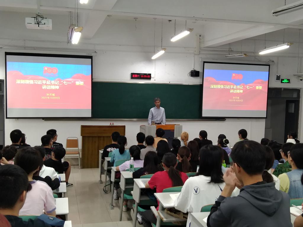 10月9日下午,校党委副书记、校长孙芳城为公共管理学院、ACCA、CIMA专业学生讲授本学期形势与政策课的第一讲,帮助同学们更为深刻、系统地领悟习近平总书记“七一”重要讲话精神。