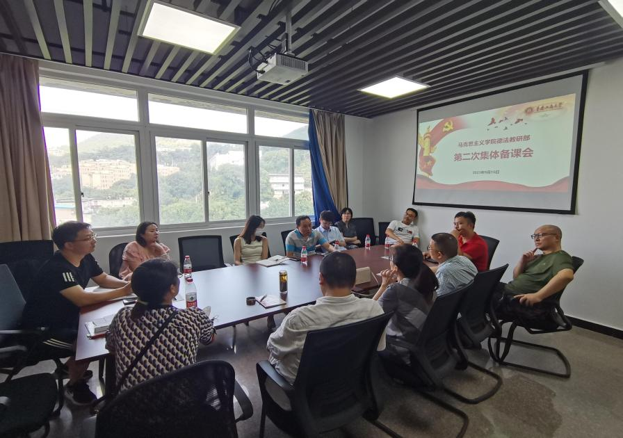 为了准确把握《思想道德与法治》2023年版新教材的指导思想、基本精神和主要内容,9月15日下午,思想道德与法治教研部在慧智楼90910会议室召开了第二次“立德垂范”集体备课会。本次会议由教研部主任董骏主持,思想道德与法治教研部全体教师参加。