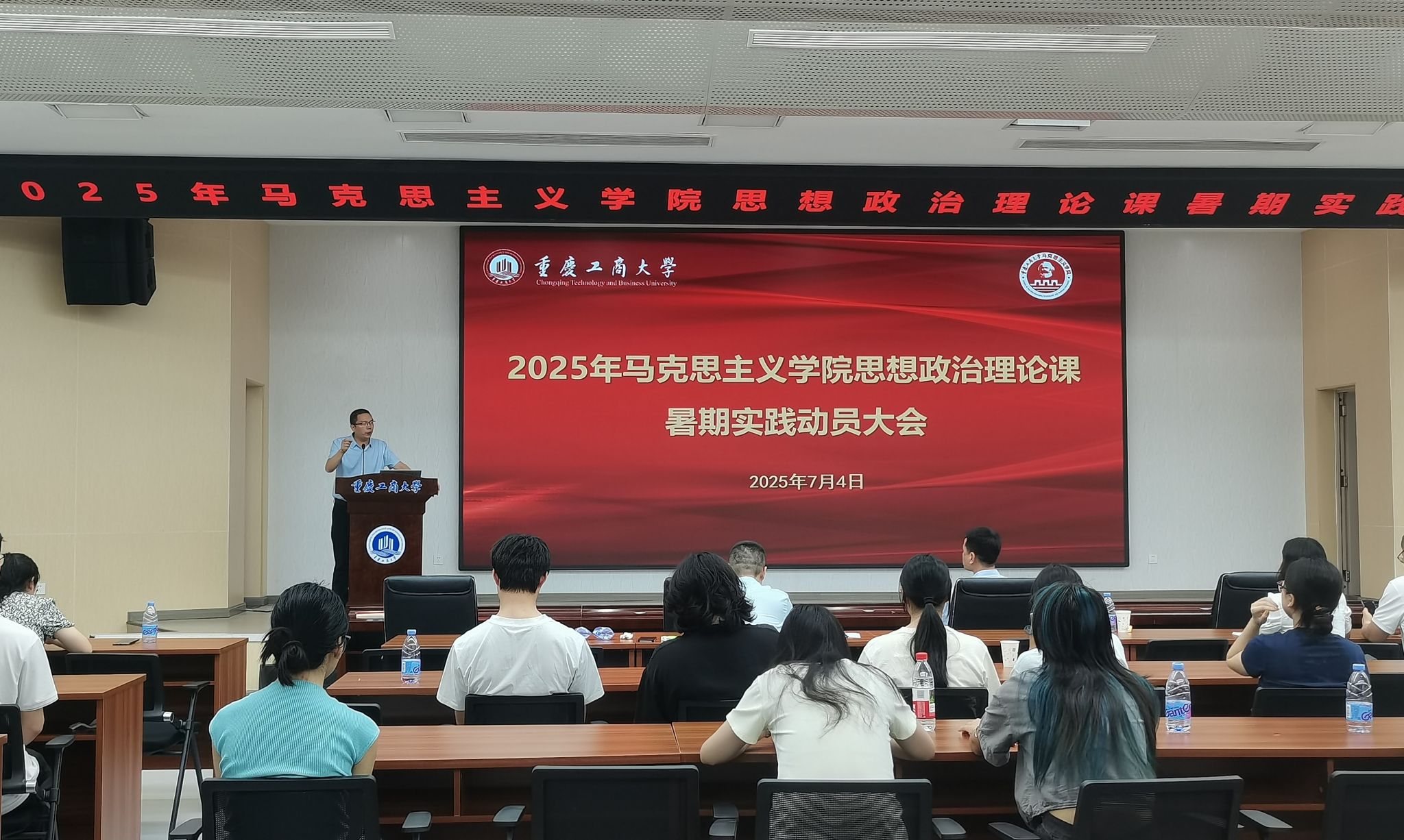 在动员大会上,刘富胜院长就暑期实践工作作出重要部署。他强调,本次实践活动要以习近平新时代中国特色社会主义思想为根本遵循,通过“红色教育+基层调研”双轨并行的创新模式,着力打造具有马院特色的实践育人品牌。一方面,将组织学生实地走访习近平总书记点赞过的重庆红色教育基地,在革命遗址中感悟初心使命;另一方面,聚焦乡村振兴、成渝地区双城经济圈建设等重大战略实施成效,开展沉浸式社会调研。刘富胜特别指出,实践活动要突出“三个结合”:将理论学习与实践锻炼相结合、将国情认知与能力提升相结合、将价值引领与专业发展相结合,真正实现“知行合一”的育人效果,让青年学子在实践中厚植家国情怀、锤炼过硬本领。